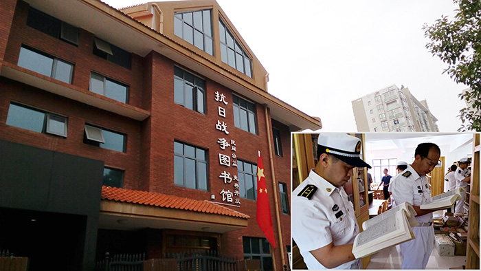 湖南炎德文化實業有限何譽軍創建的抗日戰爭圖書館。右下圖為海軍某部官兵到抗日戰爭圖書館參觀學習。