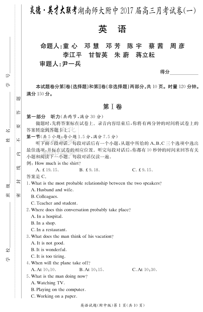 上一篇:【物理】炎德英才大聯考2017師大附中高三1次月考