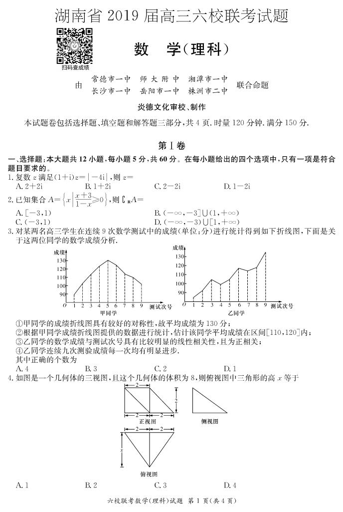 【理數】湖南省2019屆高三六校聯考