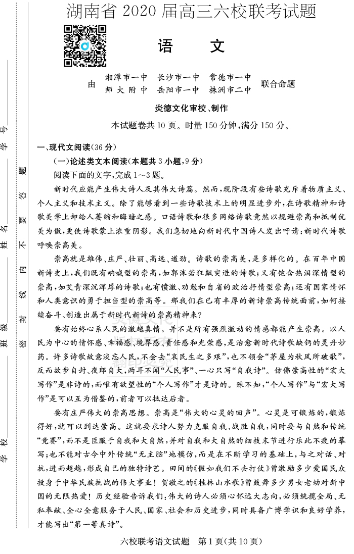 上一篇:【英語】湖南省2020屆高三六校聯考(附中模擬一)