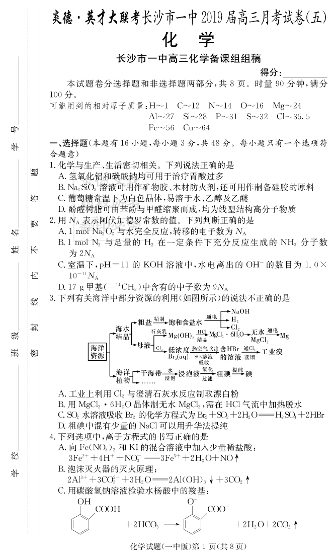 2026名師導學·高考總復習·小題量基礎周周考·化學