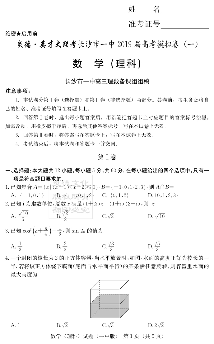 下一篇:【理綜】炎德英才大聯考2019長沙一中高三10次月考(模擬一)