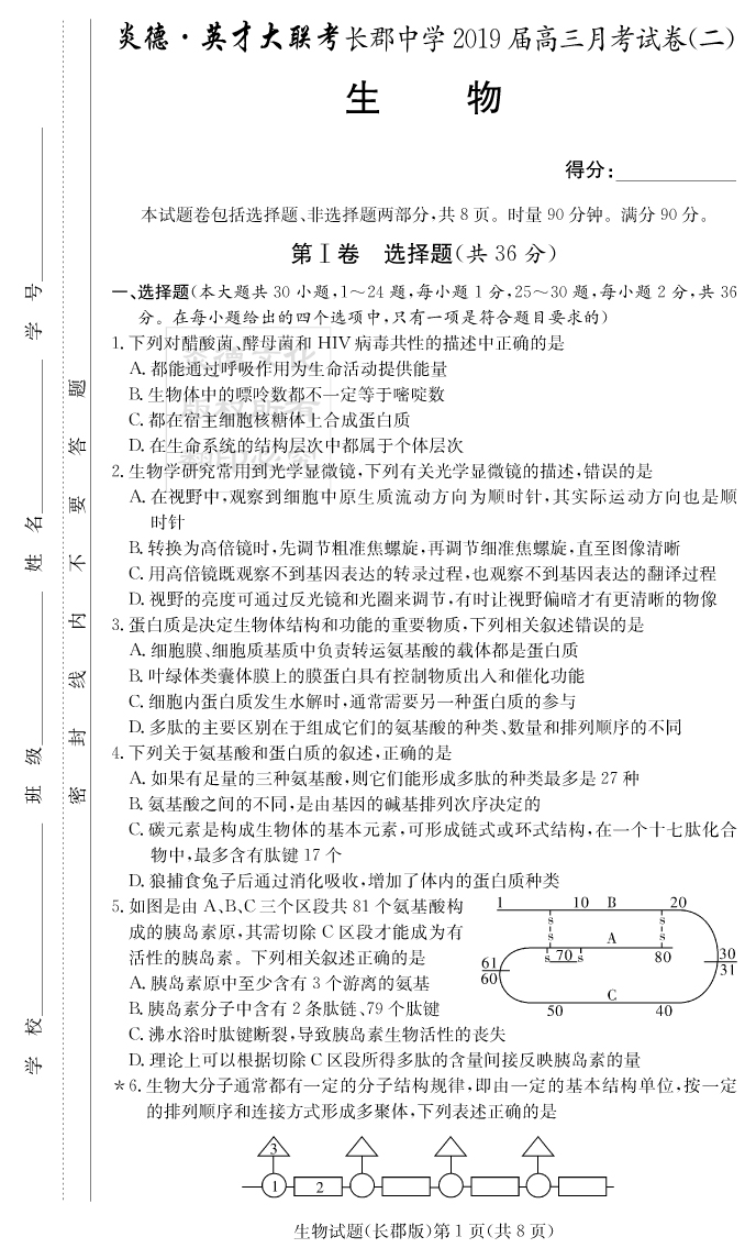 2026高考總復習單元同步滾動測試卷·生物