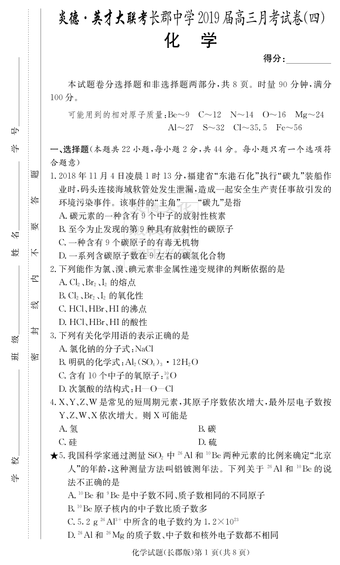 2026名師導學·高考總復習·小題量基礎周周考·化學
