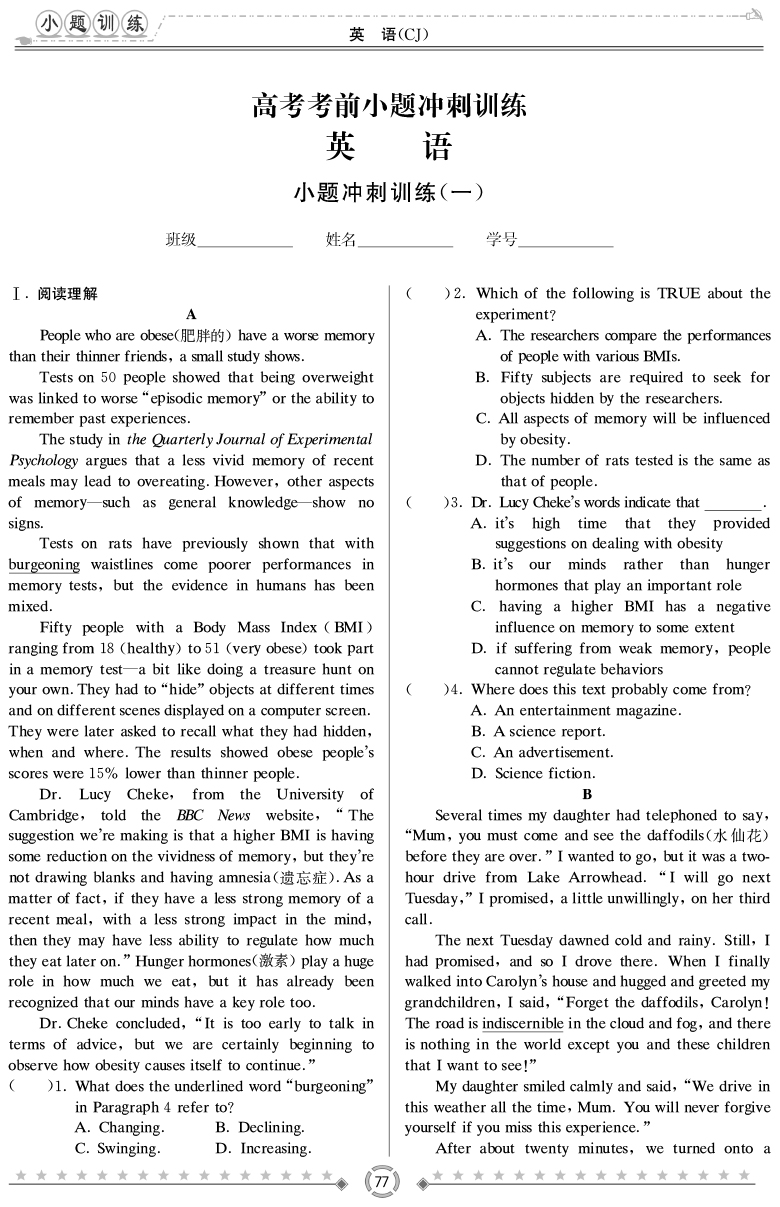 【英語】長郡中學2019高考考前小題沖刺訓練