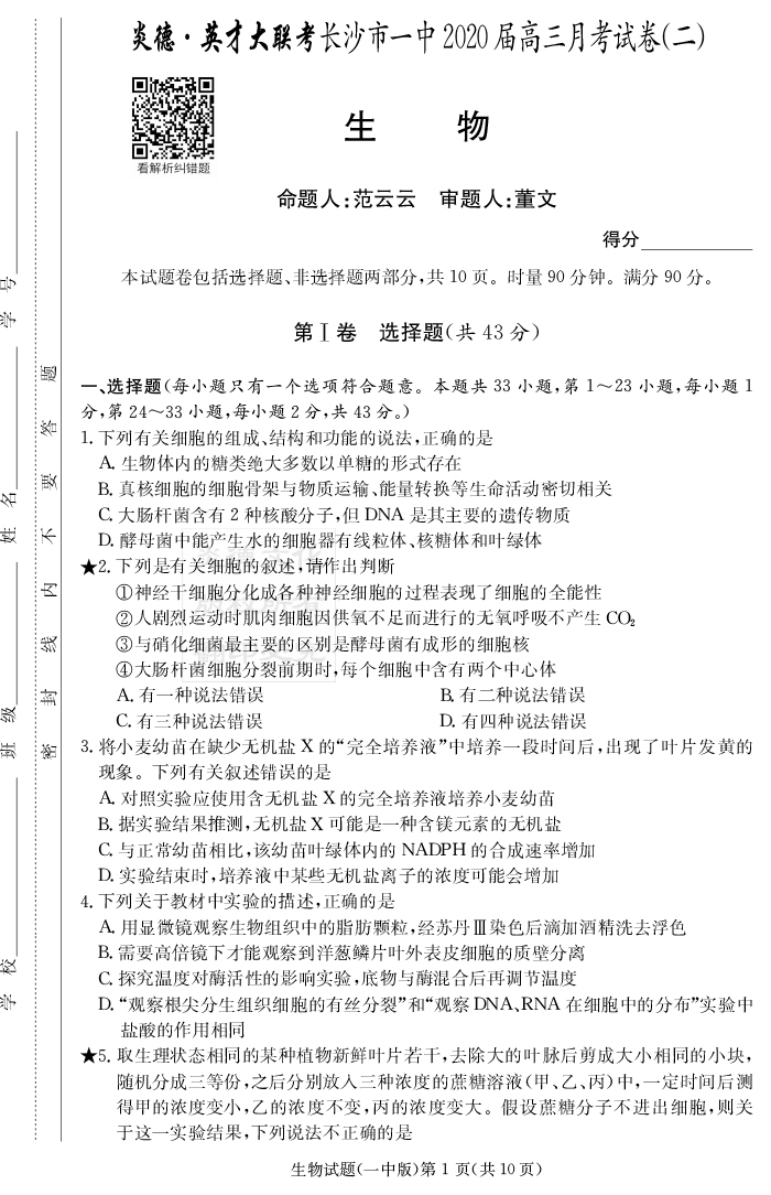| 資源類別: | 名校月考 | |