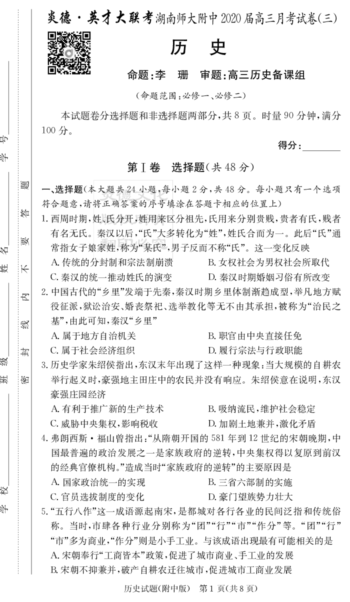 2025名師導學·名校名卷經典試題匯編·歷史