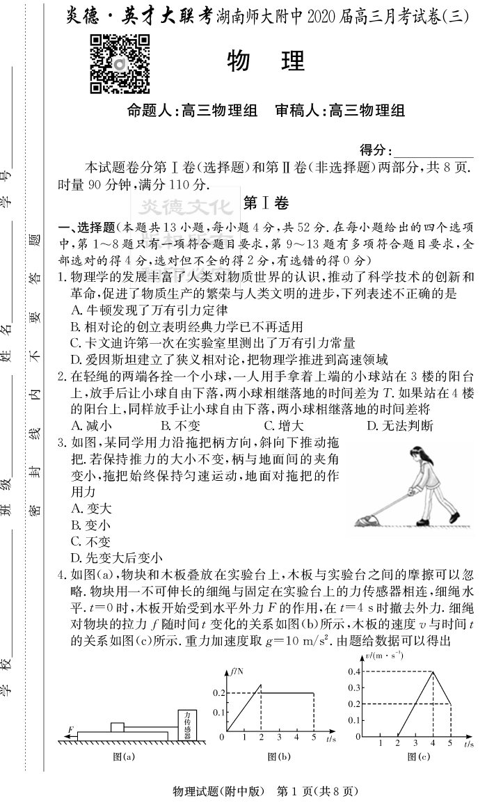 上一篇:【文數】炎德英才大聯考2020屆師大附中高三3次月考