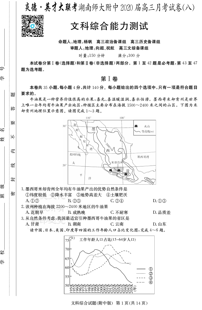 【文綜】炎德英才大聯考2020屆師大附中高三8次月考