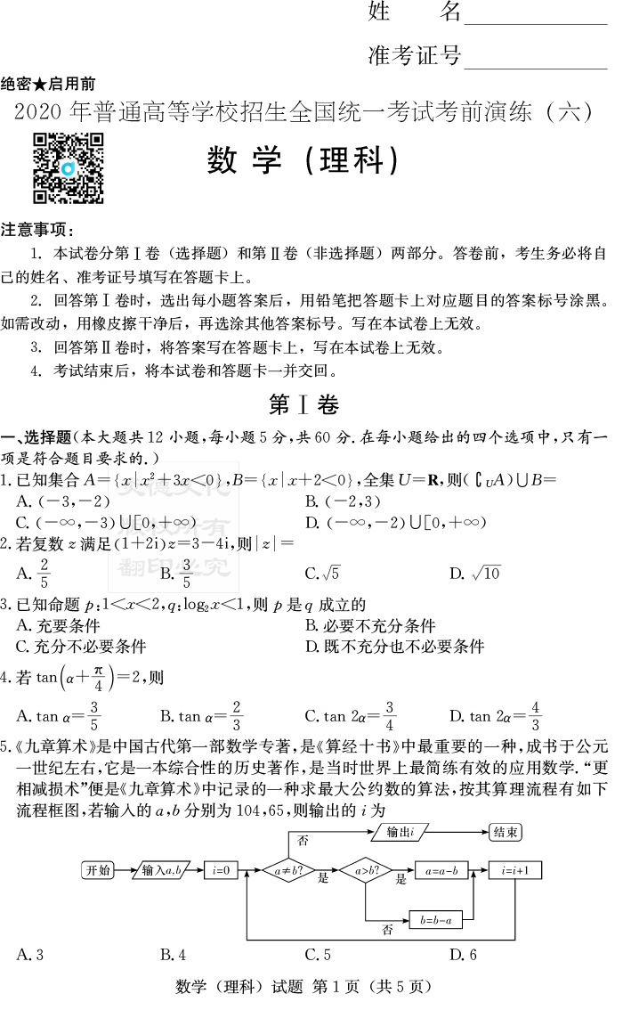 下一篇:【理綜】2020年普通高等學校招生全國統一考試考前演練(六)