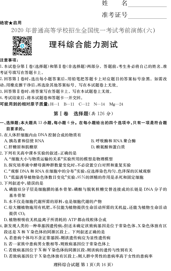 2026名師導學·高考總復習·小題量基礎周周考·生物