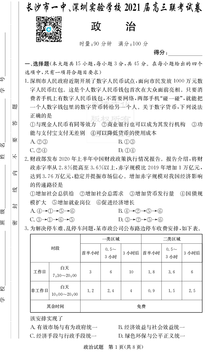 2026高考總復習單元同步滾動測試卷·政治
