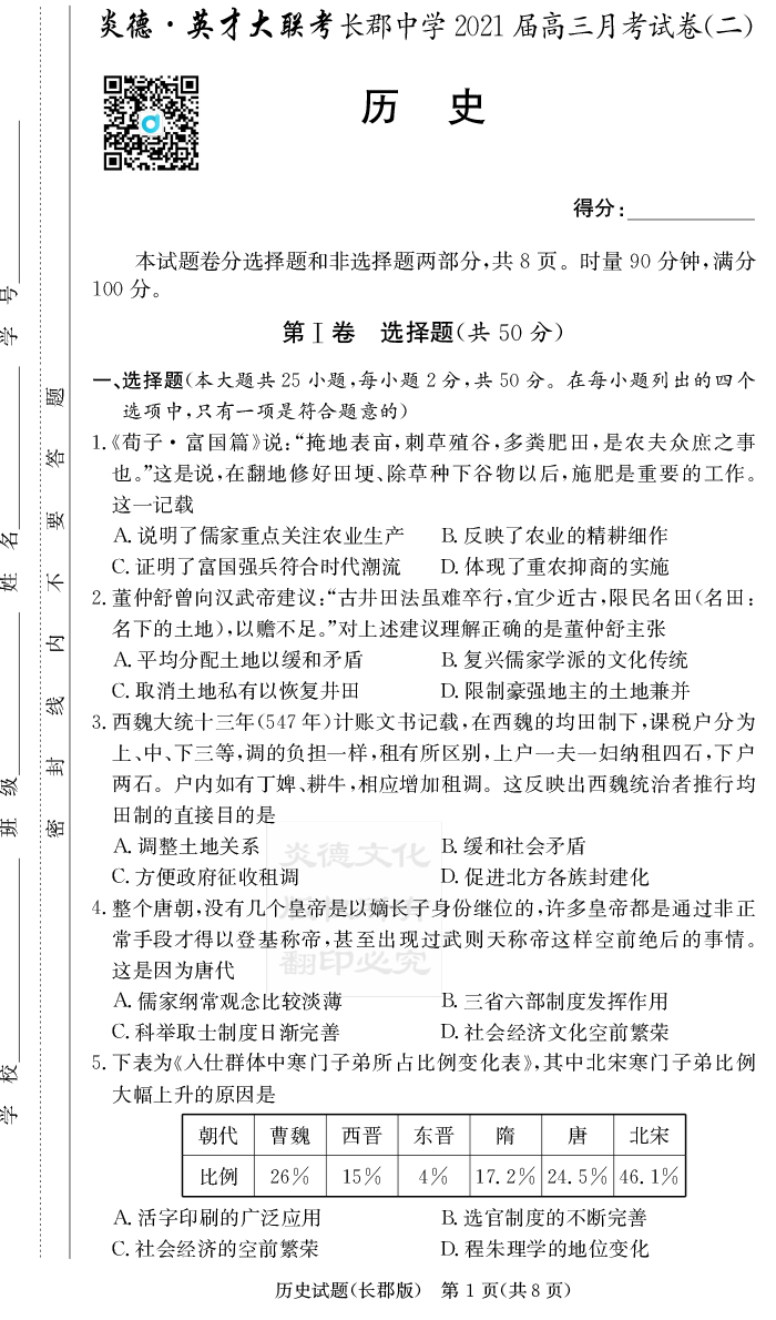 2025名師導學·名校名卷經(jīng)典試題匯編·歷史