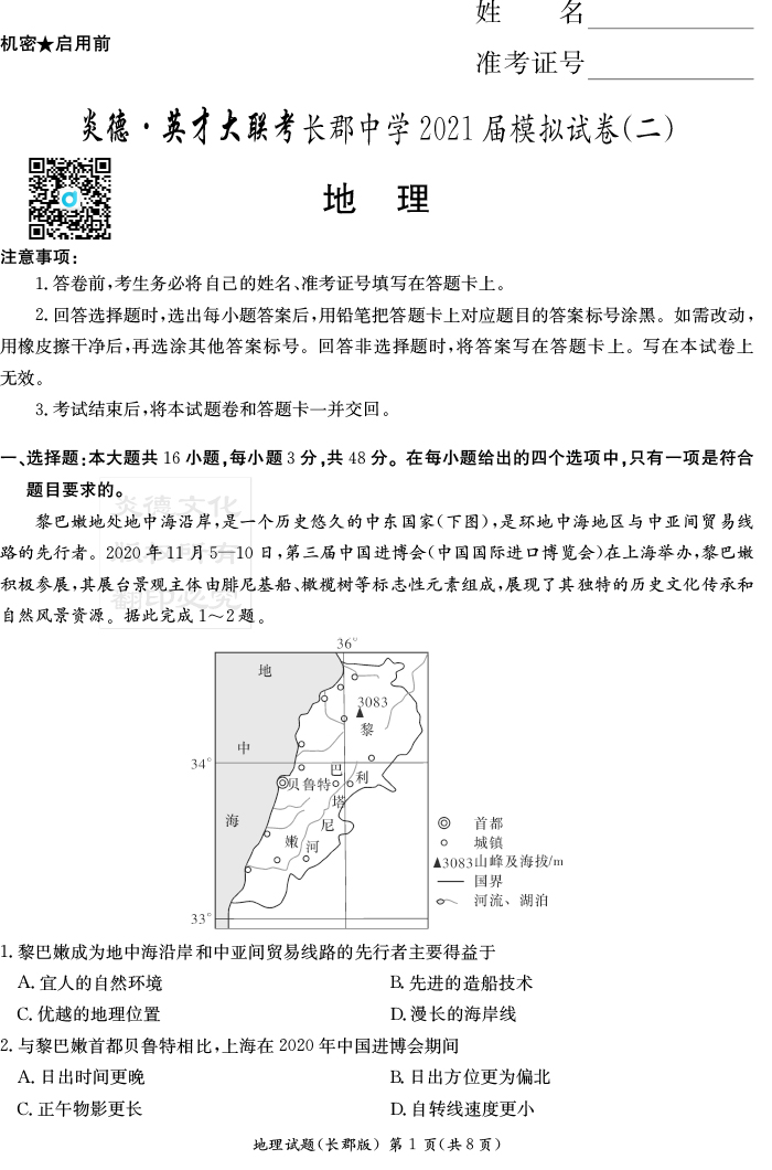 上一篇:【政治】炎德英才大聯考2021屆長郡中學高三9次月考(模擬一)