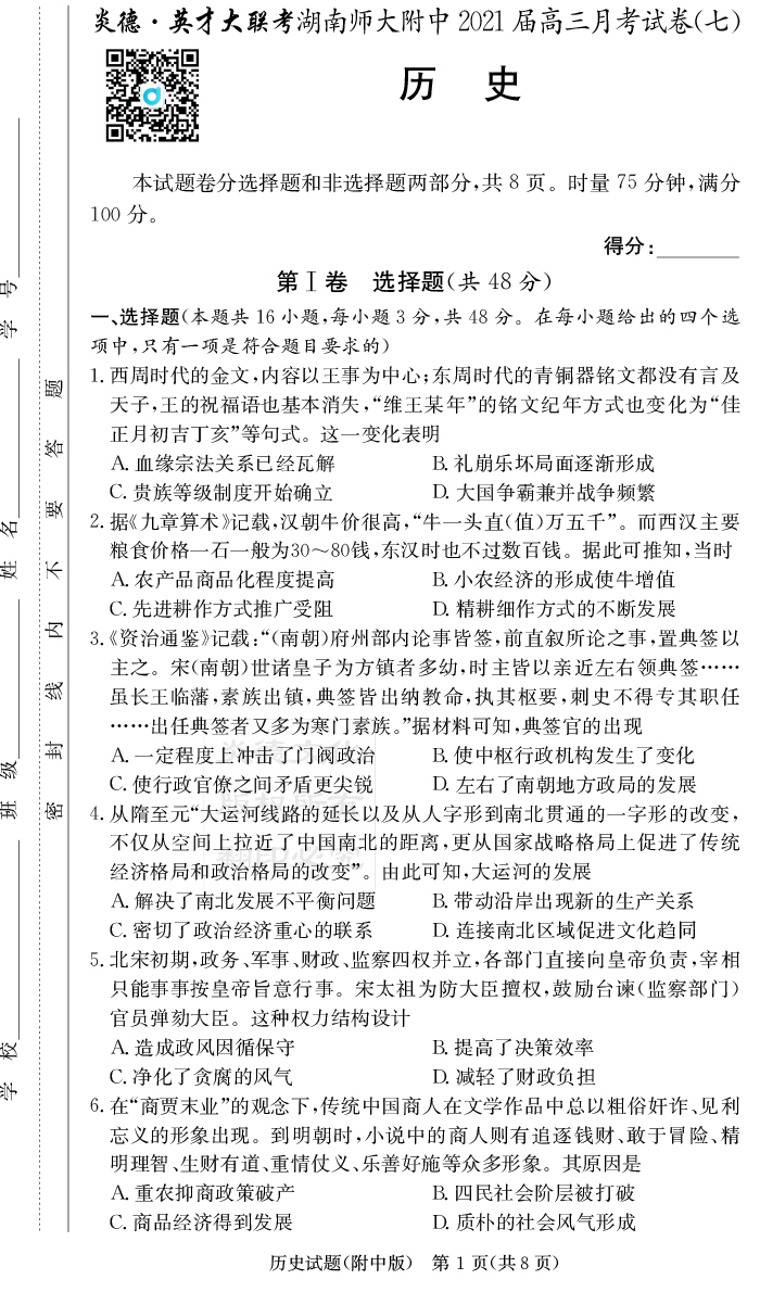 上一篇:【化學】炎德英才大聯考2021屆湖南師大附中高三7次月考