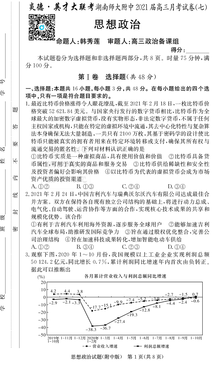 2025名師導學·名校名卷經典試題匯編·政治