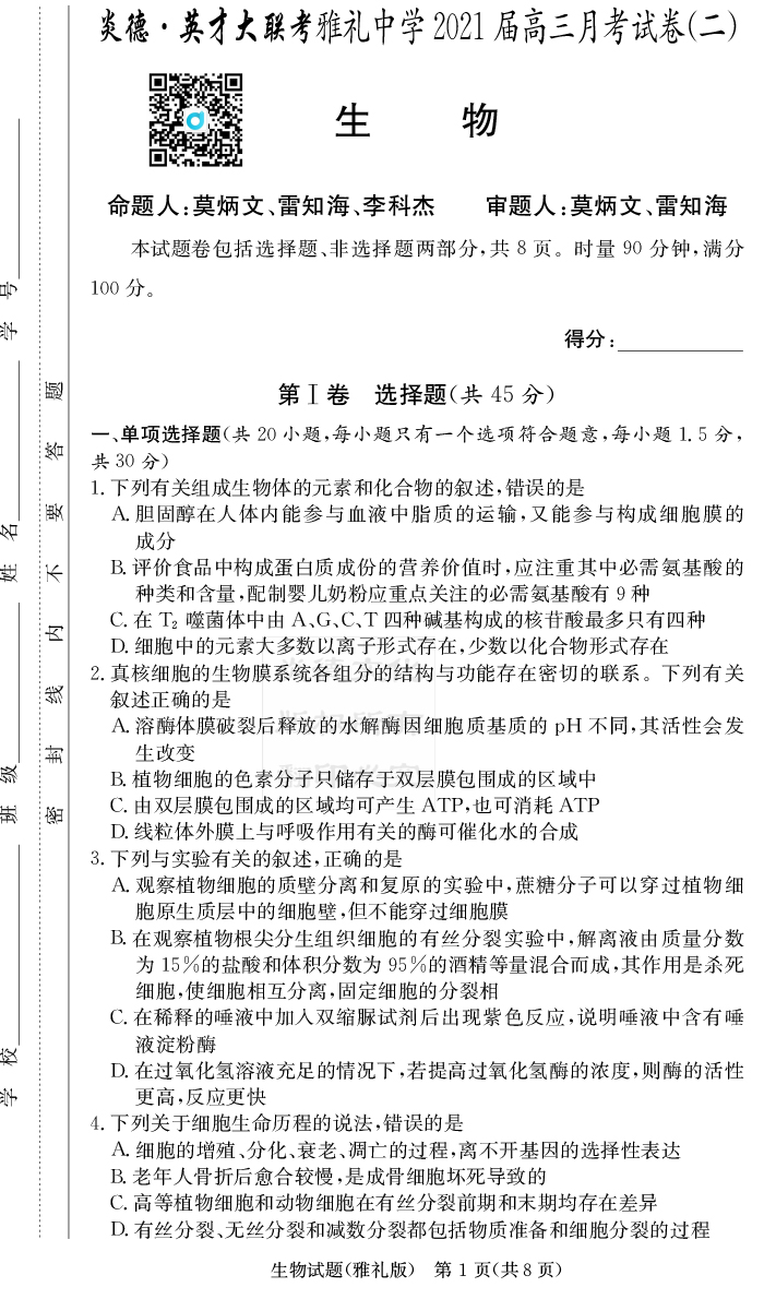 | 資源類別: | 名校月考 | |