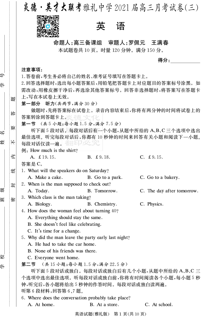 下一篇:【語文】炎德英才大聯考2021屆雅禮中學高三3次月考