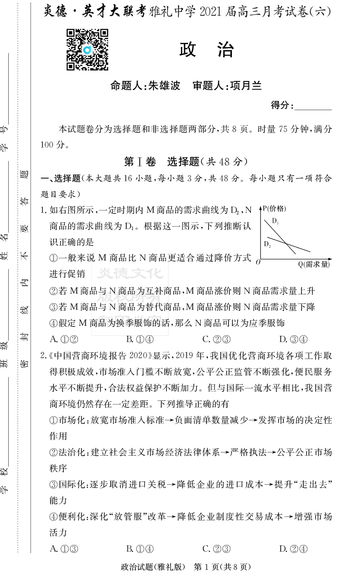 上一篇:【語文】炎德英才大聯考2021屆雅禮中學高三6次月考