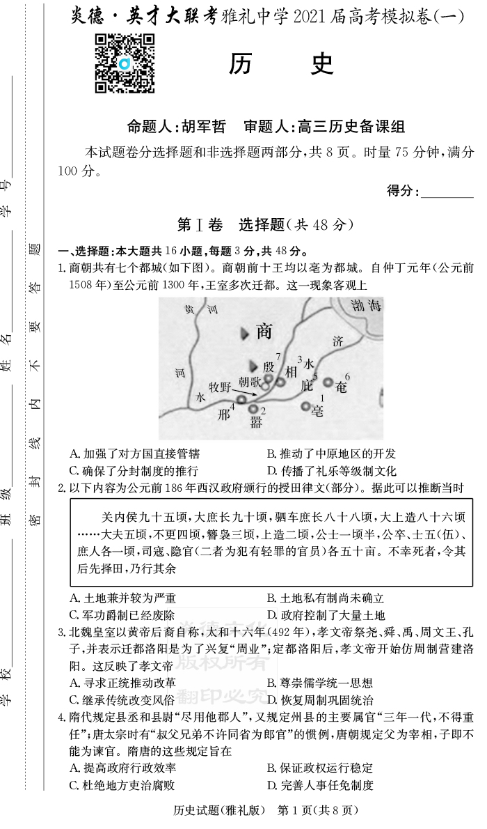 上一篇:【化學】炎德英才大聯考2021屆雅禮中學高三9次月考(模擬一)