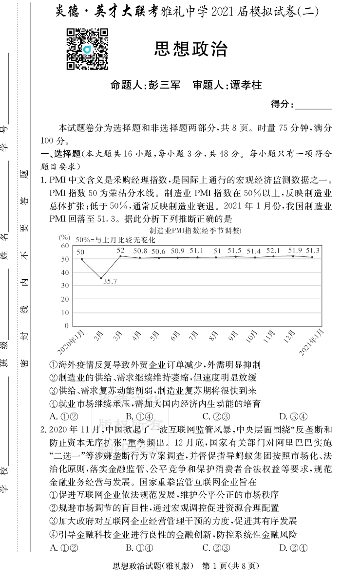 上一篇:【語文】炎德英才大聯(lián)考2021屆雅禮中學(xué)高三10次月考(模擬二)