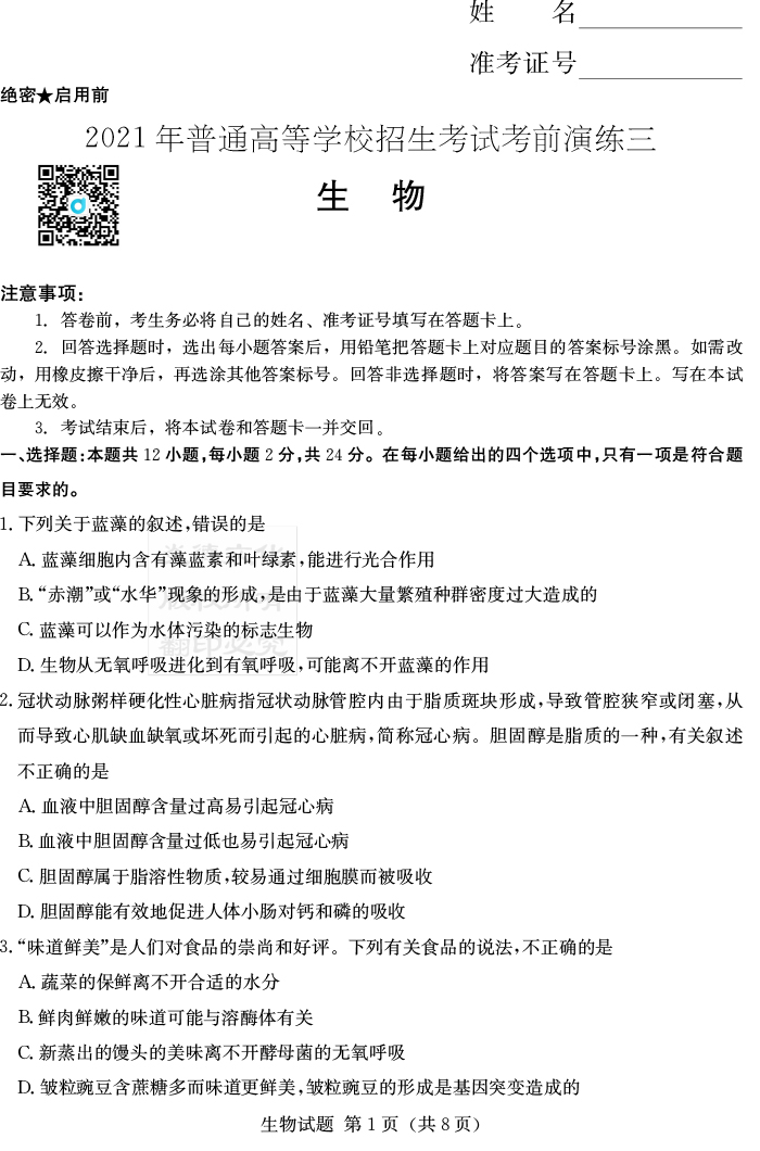 下一篇:【數(shù)學】2021年普通高等學校招生全國統(tǒng)一考試考前演練(三)