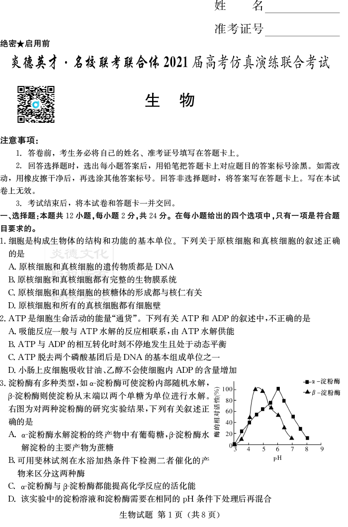 【生物】2021年普通高等學校招生全國統一考試考前演練(五)