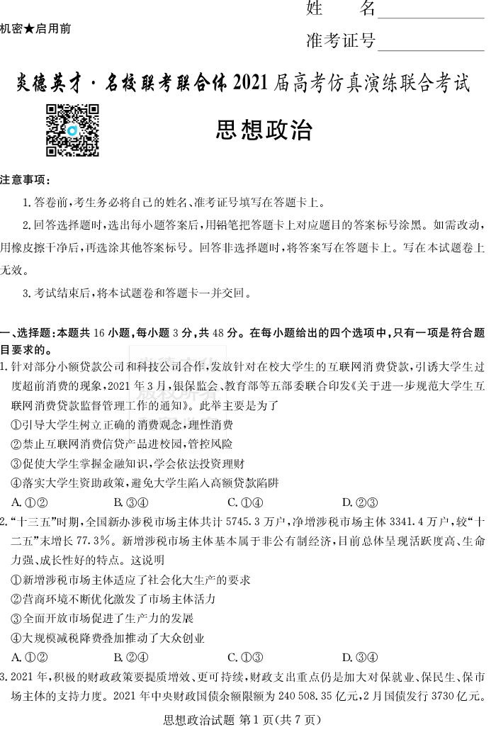 上一篇:【語文】2021年普通高等學校招生全國統一考試考前演練(五)