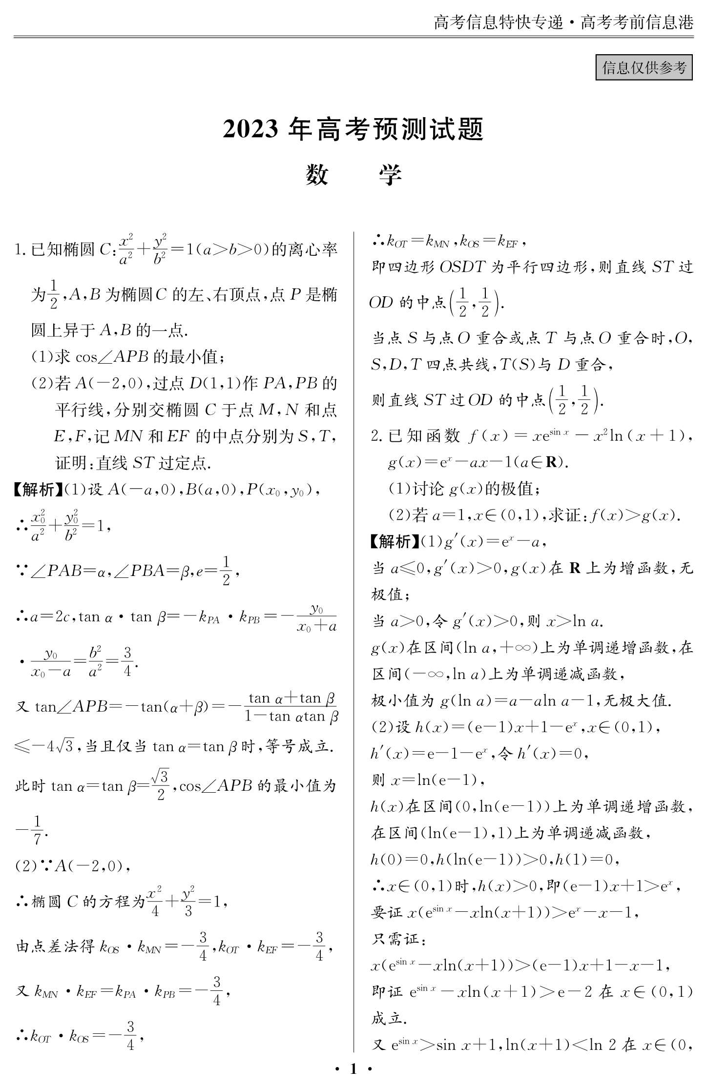 2023年高考考前預測信息補充內容(一)5月30日