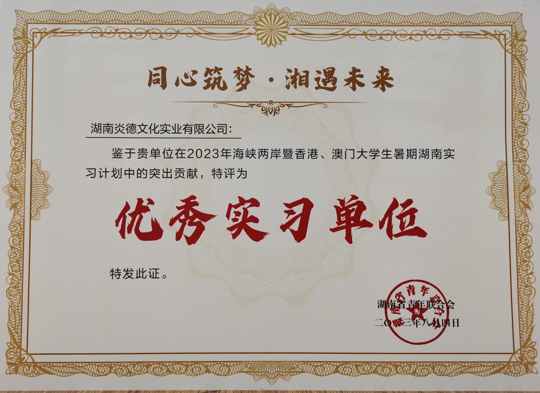 湖南炎德文化實業有限公司獲評2023年港澳臺大學生暑期湖南實習計劃“優秀實習單位”