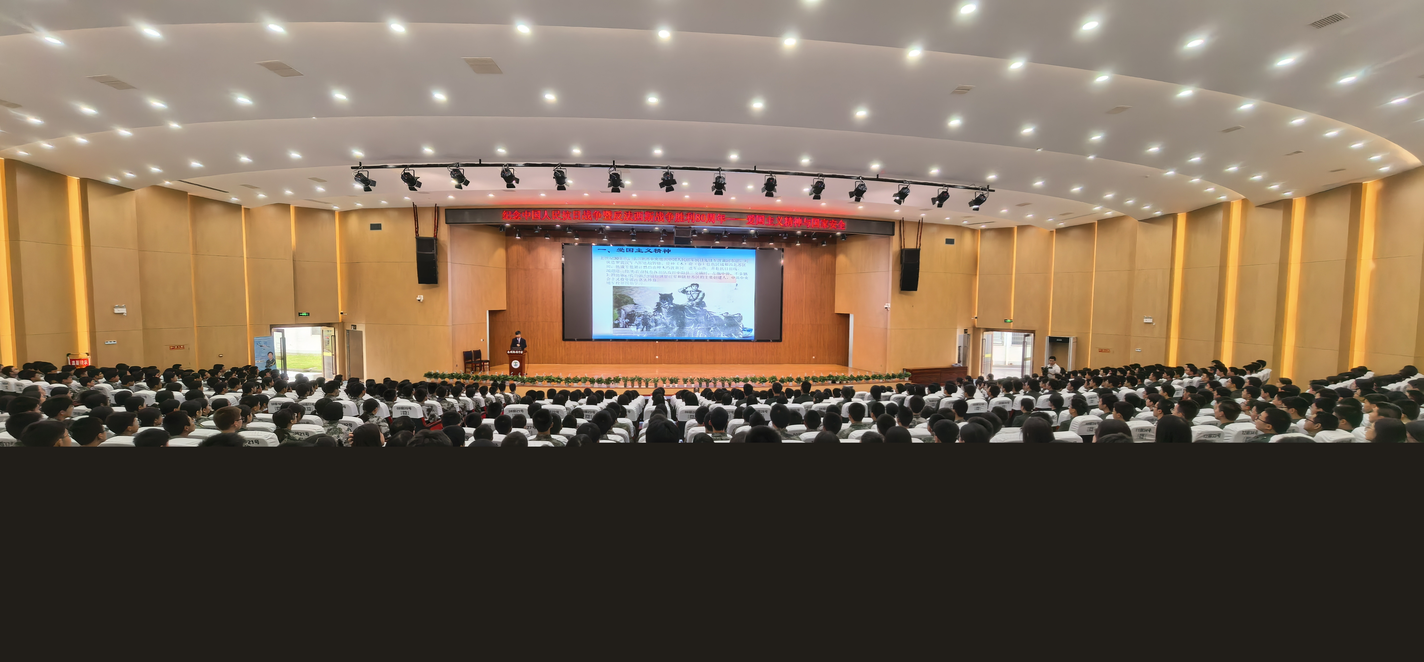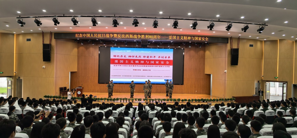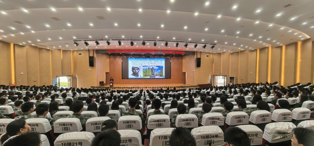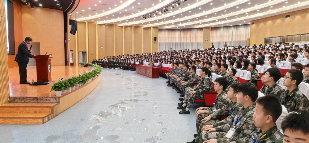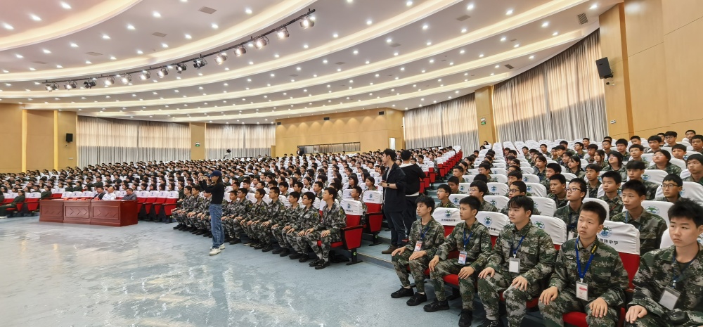 上午十點,講座在陶鑄中學大禮堂準時開始,由學校黨委書記鄧振主持,800 余位學生現場聆聽了此次愛國主義教育講座。國防班的同學進行了訓練表演。