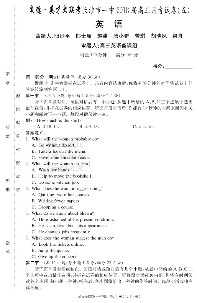 上一篇:【物理】炎德英才大聯考2018長沙一中高三5次月考